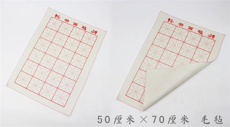 用途:創(chuàng)作或練習書畫時墊在練習紙和宣紙下面,絨毛托起宣紙,吸收多余墨水,可反復使用,甚至于有些老書畫家會用幾十年,不必再墊報紙之類經常要更換的工具,也可以不再使顏料和墨汁直接透過宣紙或練習紙而弄臟桌子,實用、柔軟、價廉物美。